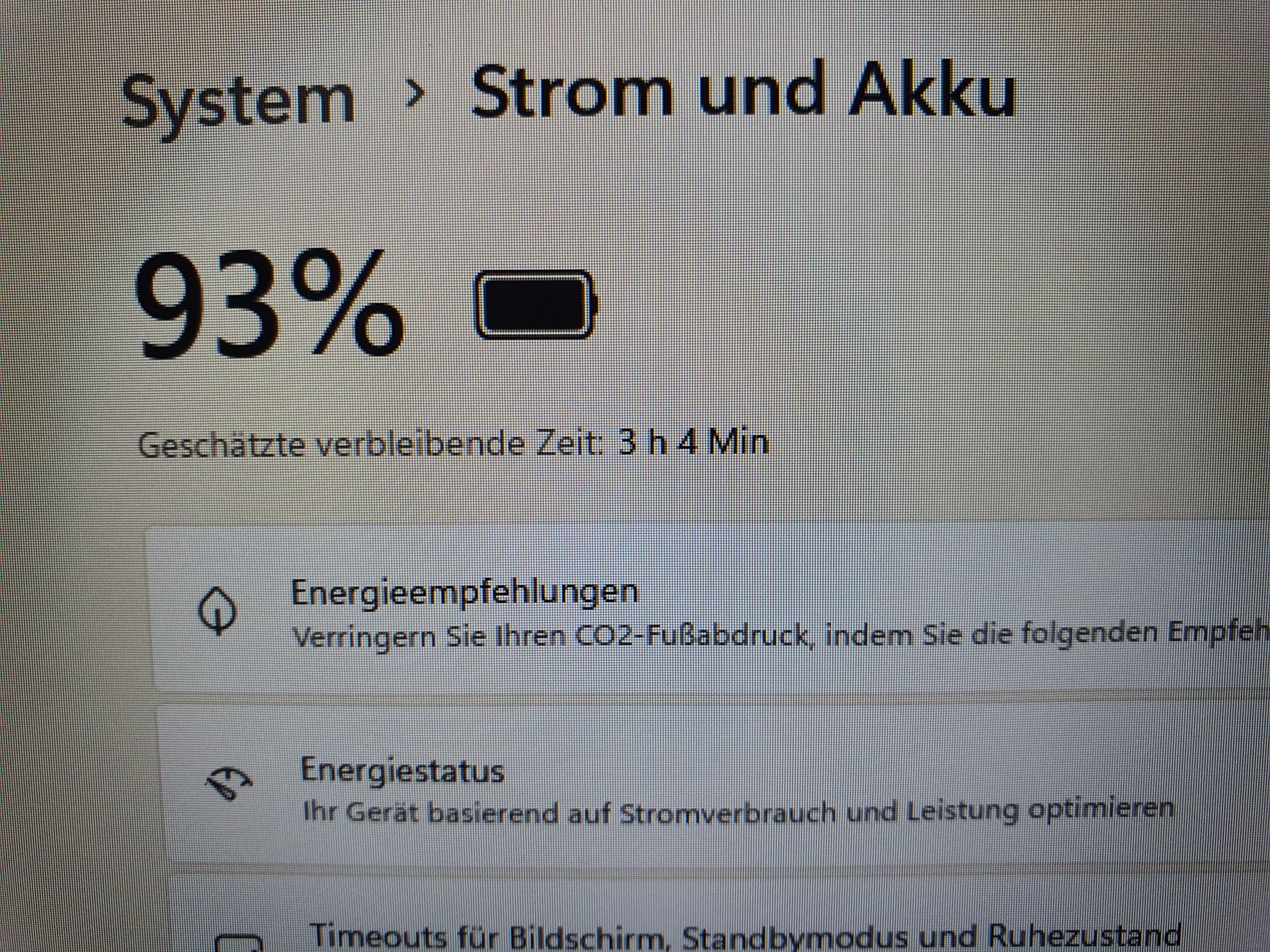 Akku laut Akkuanzeige 3 Stunden und 04 Minuten / die genaue tatsächliche Akkulaufzeit wurde aber nicht ermittelt