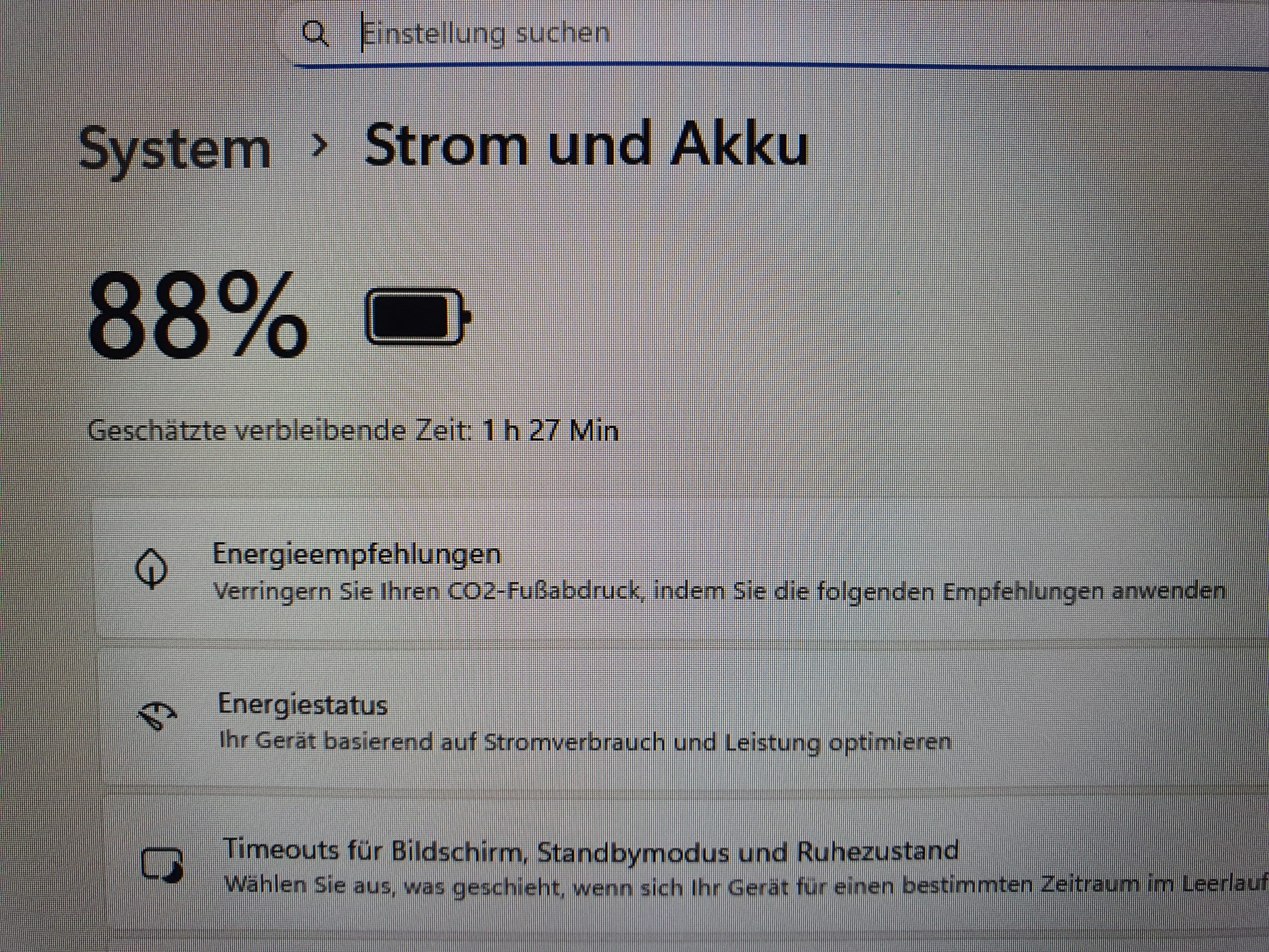 - Akku laut Akkuanzeige 1 Stunde und 27 Minuten / die genaue tatsächliche Akkulaufzeit wurde aber nicht ermittelt