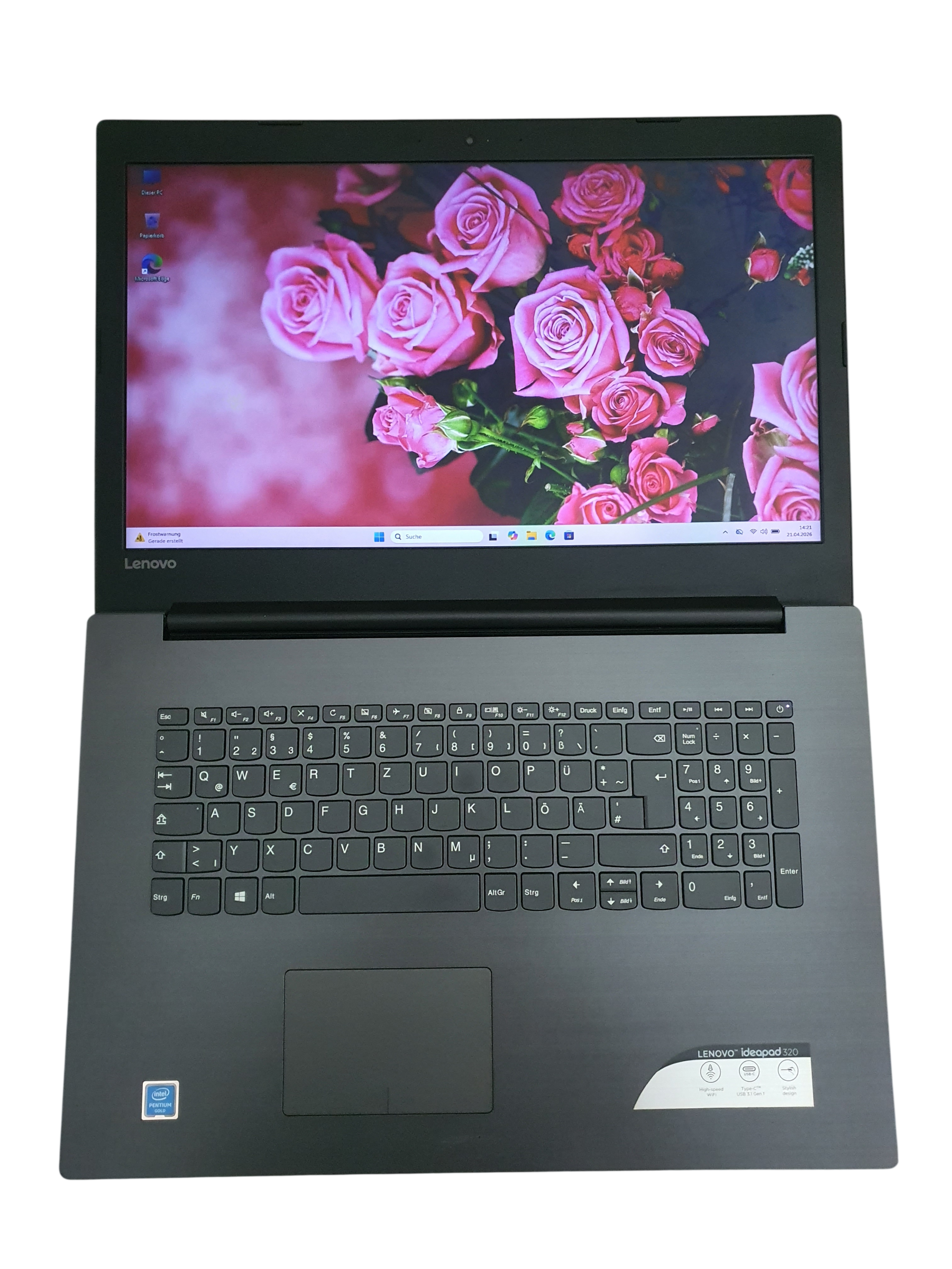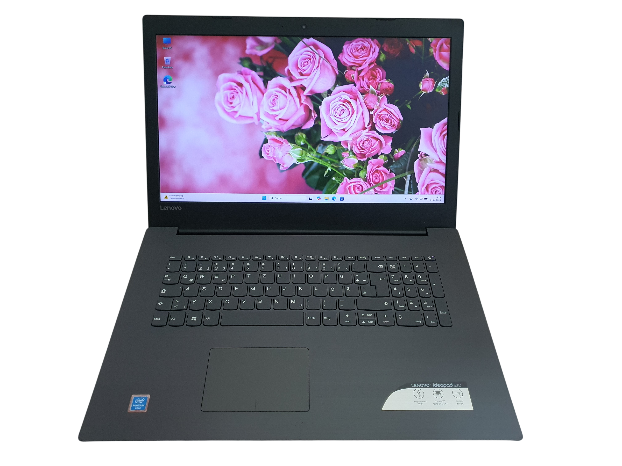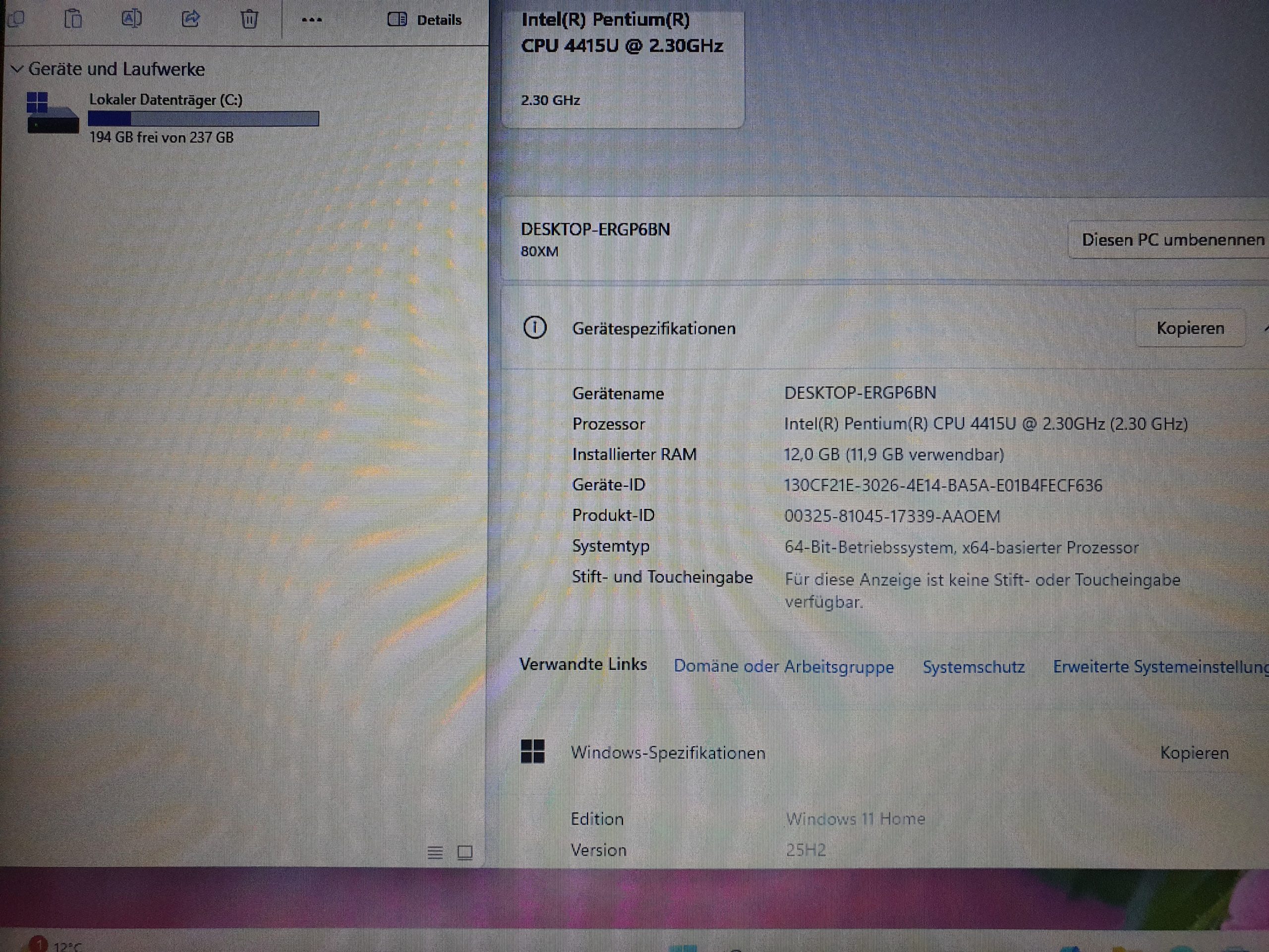 - Prozessor: Intel Pentium Gold 4415U (2 x 2,30 GHz, 4 Threads) – effizient & flott.