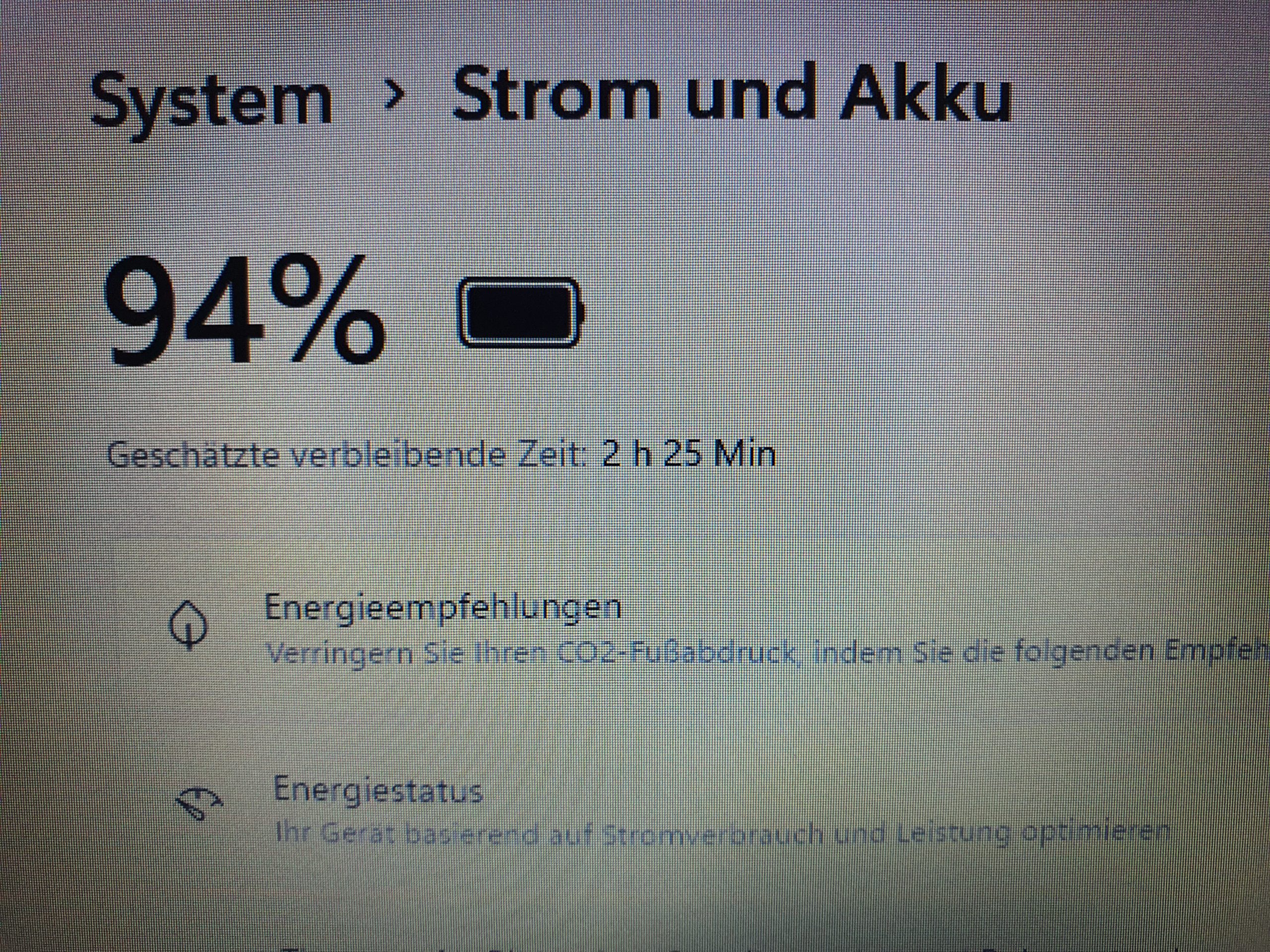 - Akku: Laut Anzeige ca. 2 Std. 25 Min. (Laufzeit variiert je nach Anwendung).