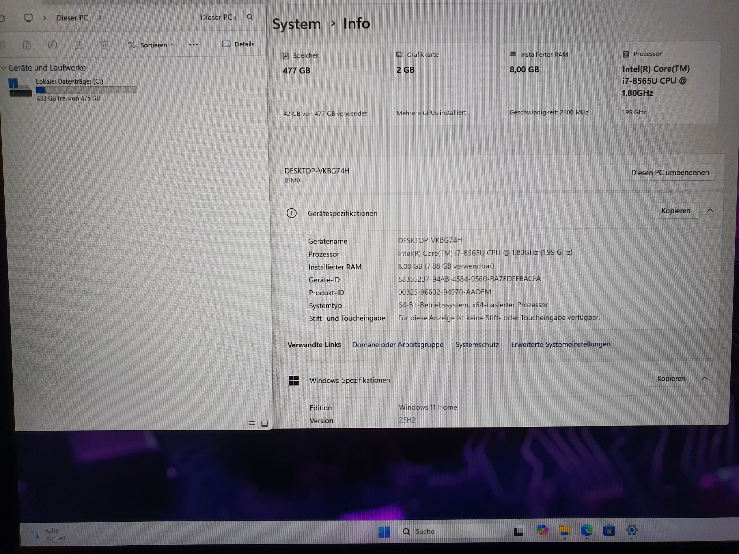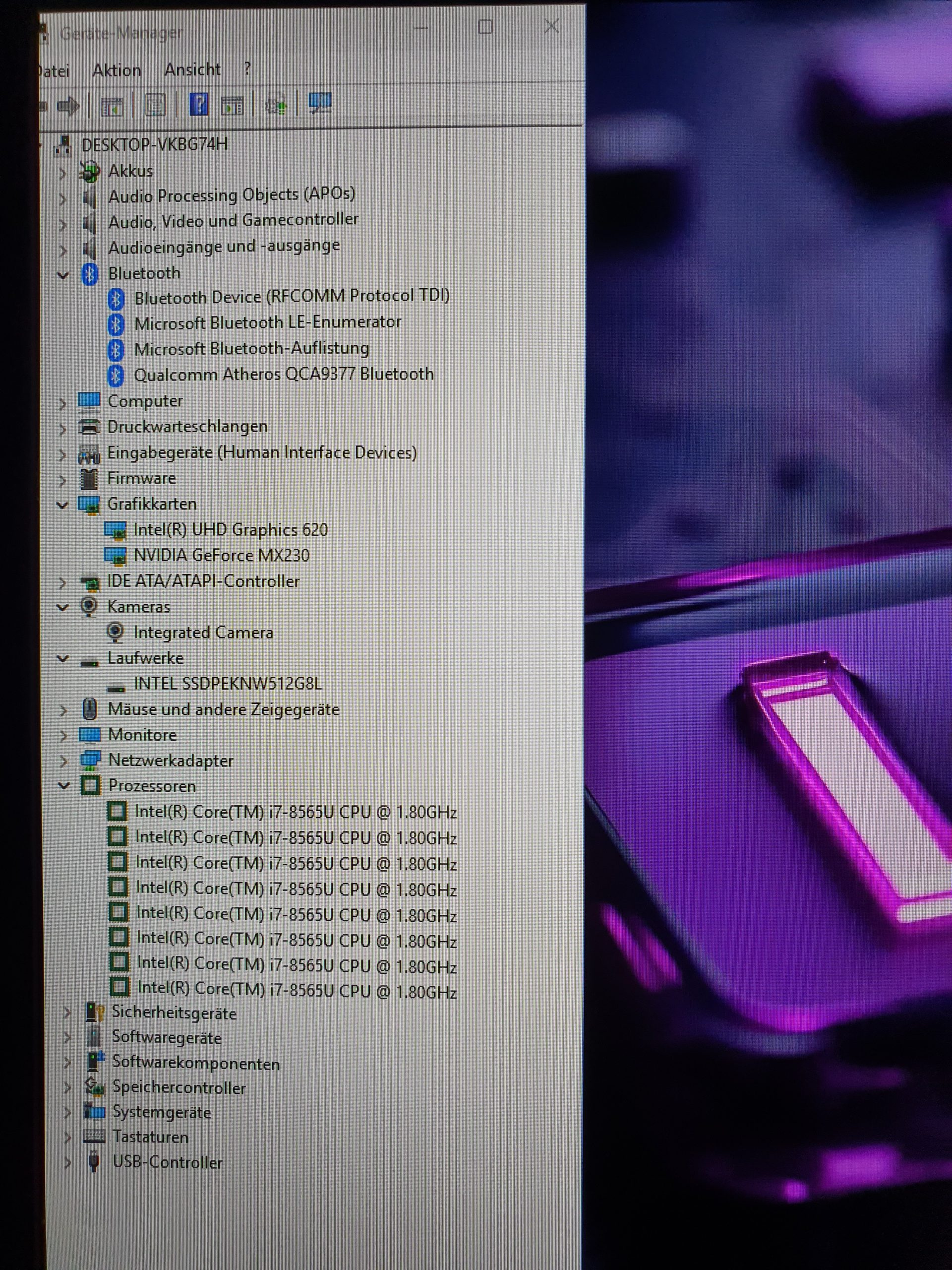 - Prozessor: Intel Core i7-8565U (4 Kerne / 8 Threads, bis zu 4,60 GHz)