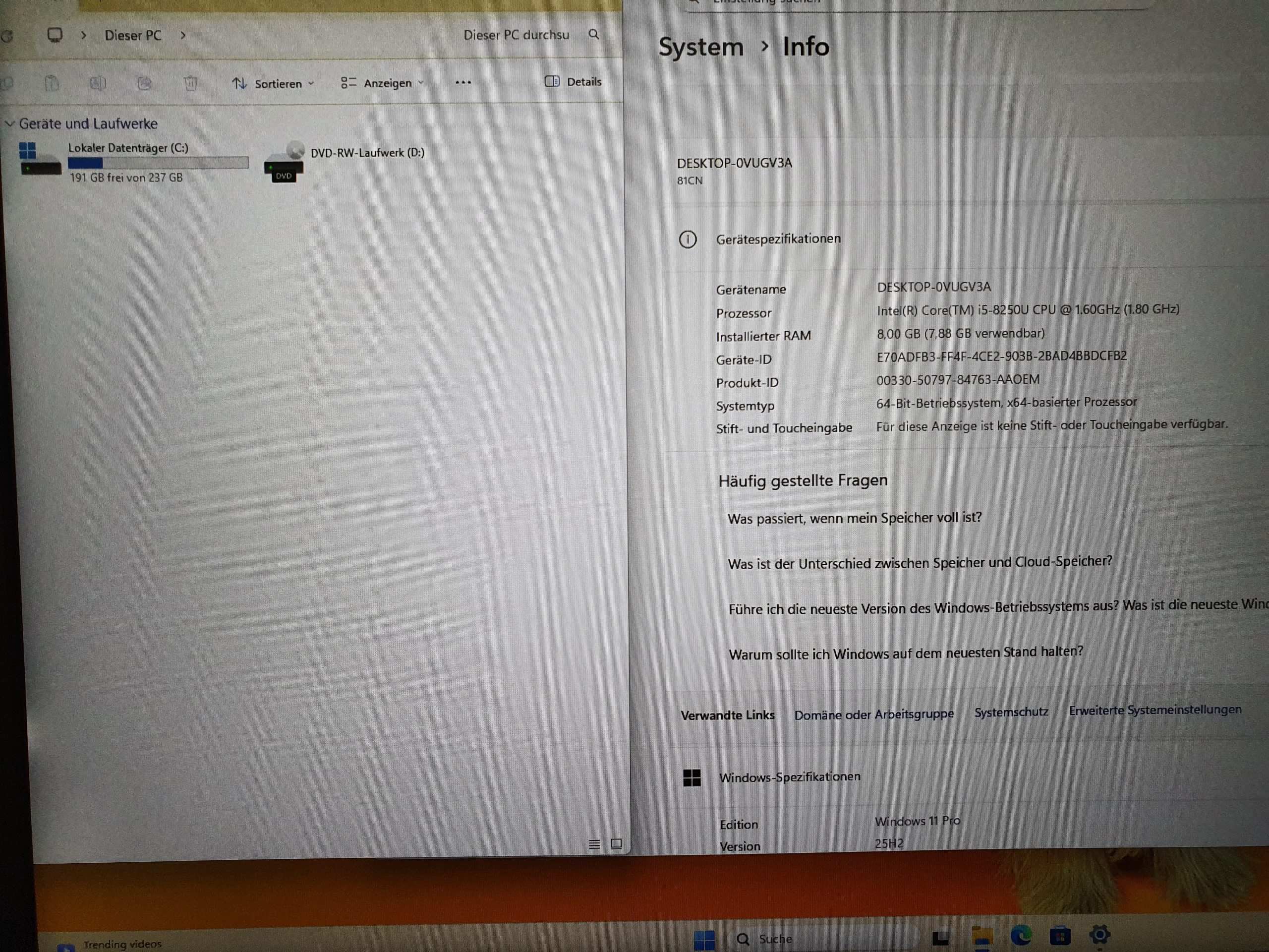 Besonders erwähnenswert: -- i5 der 8ten Generation mit einem Quad Core Prozessor -- Windows mit Blitzstart -- schnelle 256GB SSD-Festplatten der Premium-Marke Intel -- Wlan mit AC = schnelleres Wlan -- Wlan mit Dualband = kann sich über 2 Funkfrequenzen in das Netzwerk einwählen -- USB 3.1 Typ-C -- DVD-Brenner -- Fingerabdrucksensor